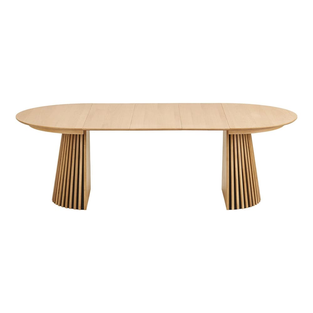 Der Esstisch Osaka bietet sowohl Stil als auch Funktionalität. Das natürliche Eichenfurnier sorgt für ein edles und einladendes Aussehen, während die Verlängerungsplatten ihn sowohl für alltägliche Mahlzeiten als auch für größere Zusammenkünfte perfekt machen. Der Tisch wird mit 3 Einsatzplatten geliefert. Dadurch kann der Tisch nach Wunsch eingestellt werden (Längen: 120 cm , 160 cm, 200 cm, 240 cm). Der Osaka ist eine gute Wahl für alle, die bei ihren Esszimmermöbeln sowohl Wert auf Stil als auch auf Vielseitigkeit legen. Mit 63,6 kg Gewicht überzeugt der Tisch durch hohe Standfestigkeit und Robustheit, für eine langanhaltende Nutzung und zuverlässige Stabilität.